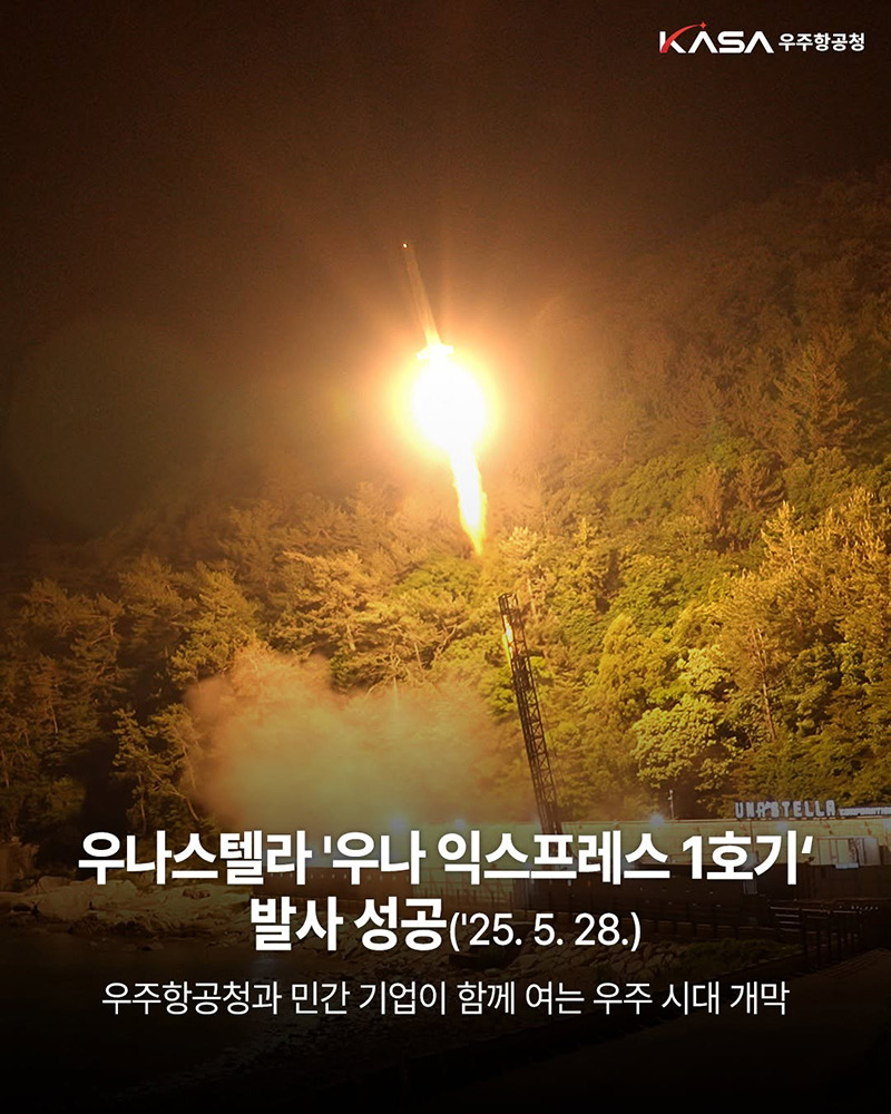 **우나 익스프레스 1호기(UNA EXPRESS-I)**는 대한민국 민간 우주기업 우나스텔라가 자체 개발한 소형 발사체로, 2025년 5월 28일 밤 11시 50분 전라남도 고흥군 봉래면에 위치한 자체 발사장에서 시험 발사에 성공했습니다