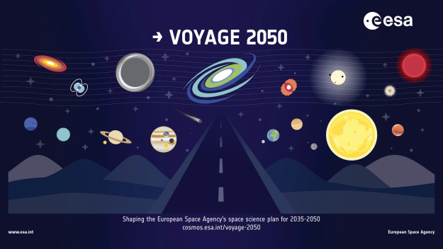 - Voyage 2050 프로그램: ESA는 2035년부터 2050년까지의 대형 과학 임무 주제로 거대 행성의 위성 탐사, 외계 행성 탐색, 우주의 기원 연구 등을 선정하였습니다. 이를 통해 태양계와 우주의 근본적인 질문에 답하고자 합니다.